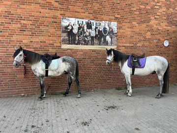 Wir haben viel Scheutraining, Horsemanship und andere Bodenarbeit auch in Form von Spaziergängen mit beiden gemacht. Beide sind schonend eingeritten und gehen brav auf dem Platz und ins Gelände. Handarbeit können auch beide.